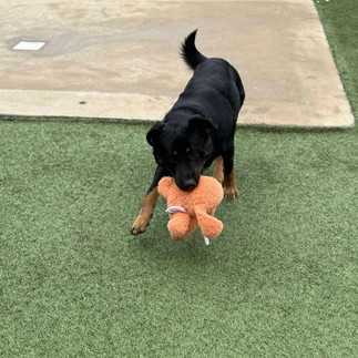 Dax rides well in the car and handles baths and nail trims nicely. He loves playing with his toys and is highly treat motivated, making him a great candidate for training and enrichment as he continues to adjust to life off the chain.